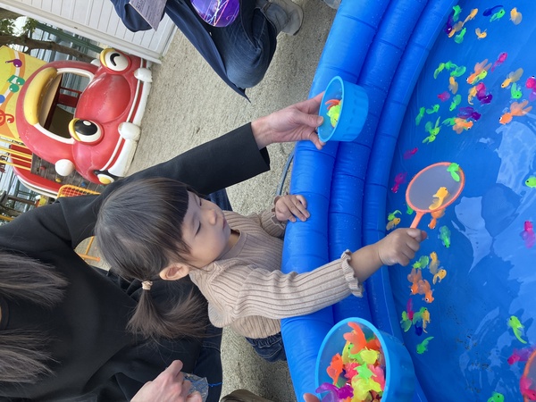 民生委員さんのおもちゃの金魚すくいコーナー 「ぽい」は網でできているので小さい子もたくさんすくって楽しめました🐟