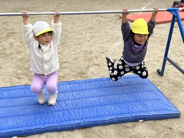 鉄棒にブラ〜ン♪ すごいでしょ!
