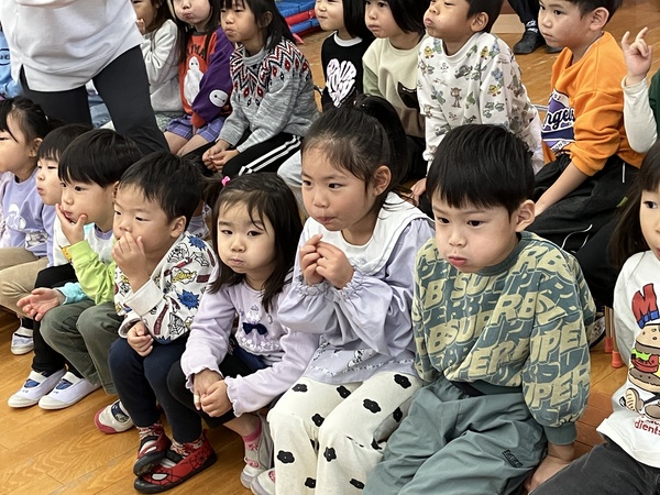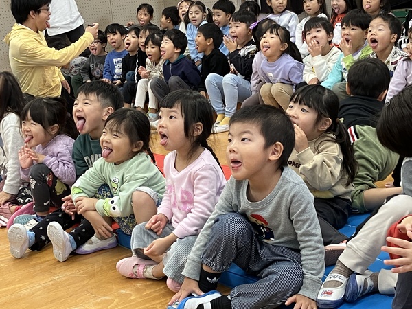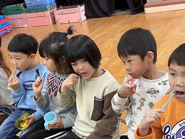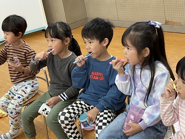 11月18日(火)歯科衛生士さんに来園していただき、幼児組の子ども達に歯の磨き方や虫歯菌について教えて頂きました。