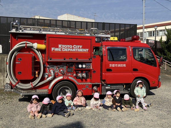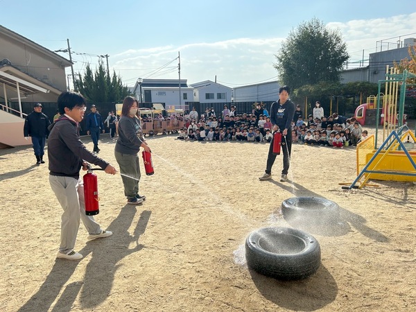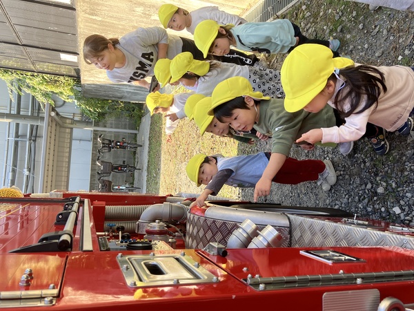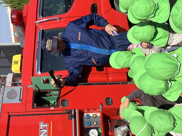 11月21日(金)消防署から消防士さんが来園して下さり、避難訓練の様子を見て頂いたり、消火活動の指導がありました。