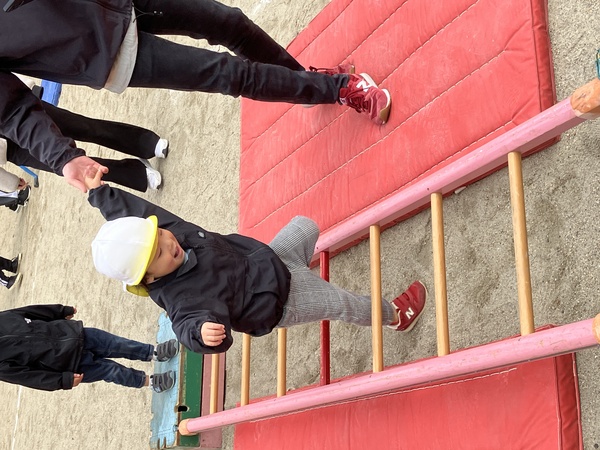 「先生!ここまで登れたよ!」足場が不安定な中みんな上手に登っていました