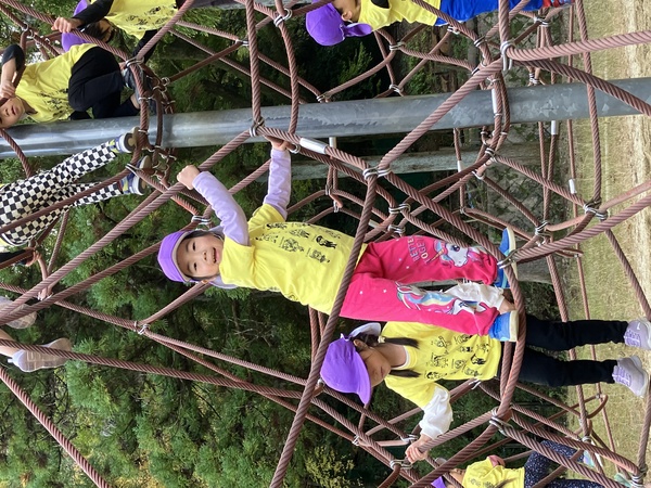 次はロープのジャングルジム!ゆらゆら揺れるたびに「キャ〜!ゆれる〜!」と叫びながらも頂上目指して登っていました。
